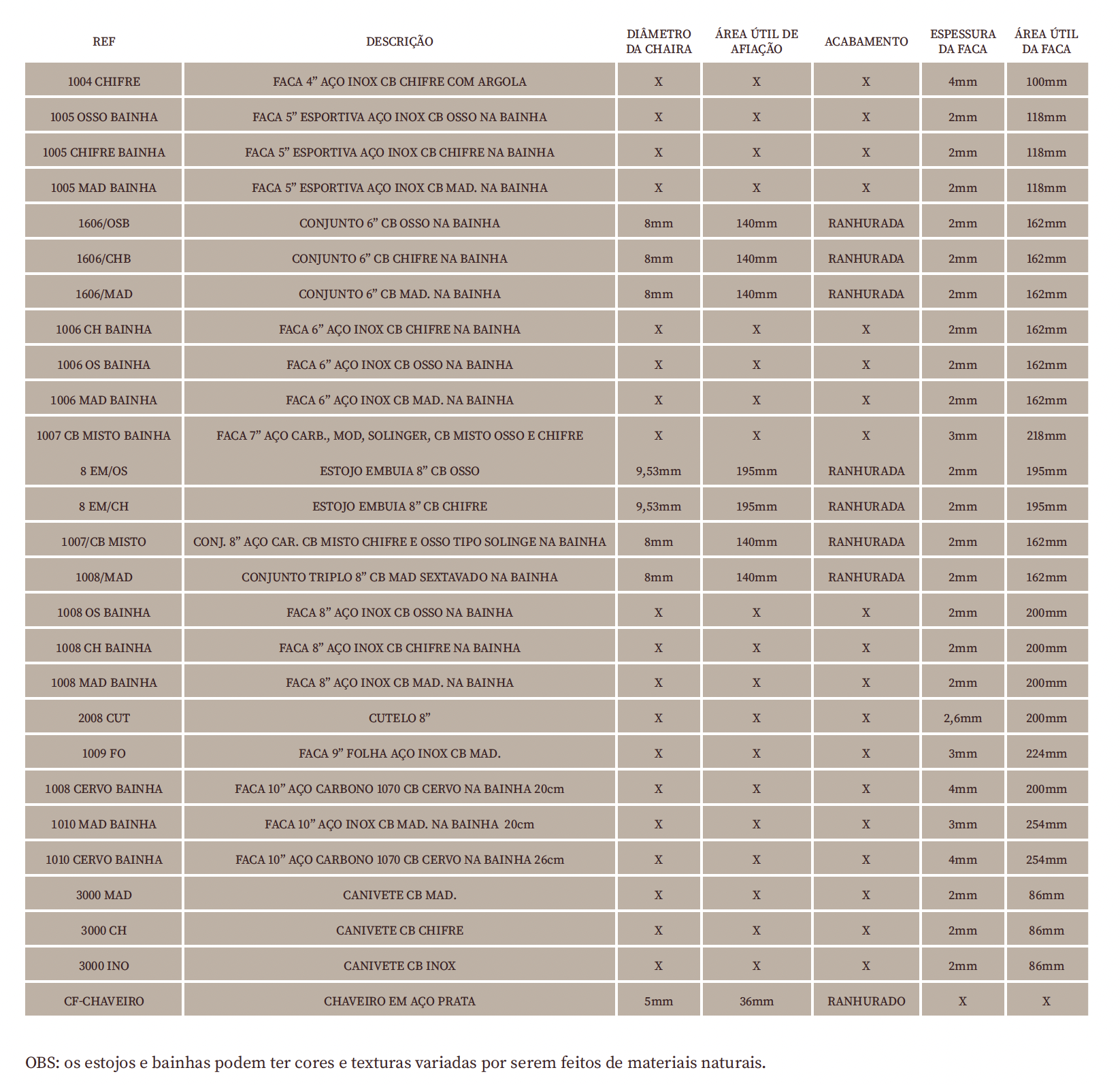 Conheça nossos modelos e encontre a faca ideal para presentear, usar no dia a dia ou compor um kit de respeito na sua cozinha ou churrasco.