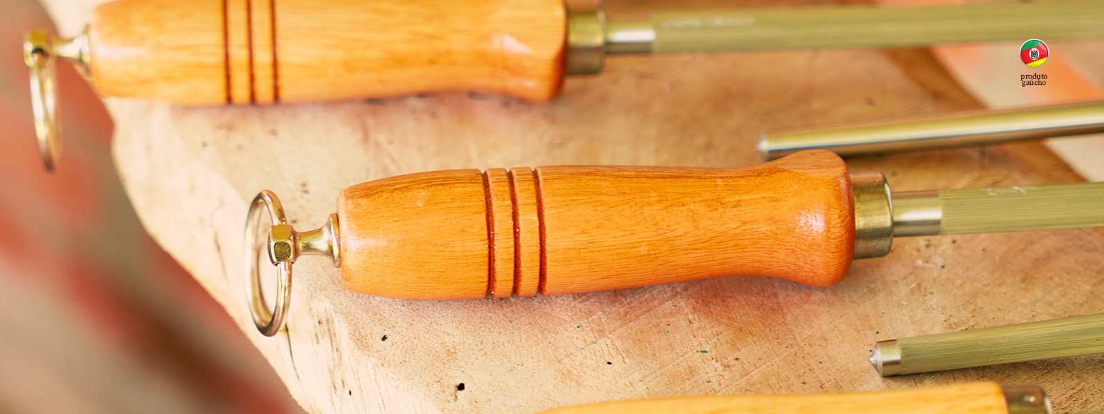 Elemento metálico aplicado na extremidade do cabo da chaira, o pitão facilita a fixação da argola e garante maior durabilidade do conjunto, além de permitir guardar a chaira pendurada. Resistente e discreto, está presente em diversos modelos da Costa & Fio, podendo ser utilizado com ou sem argola, conforme a necessidade do cliente